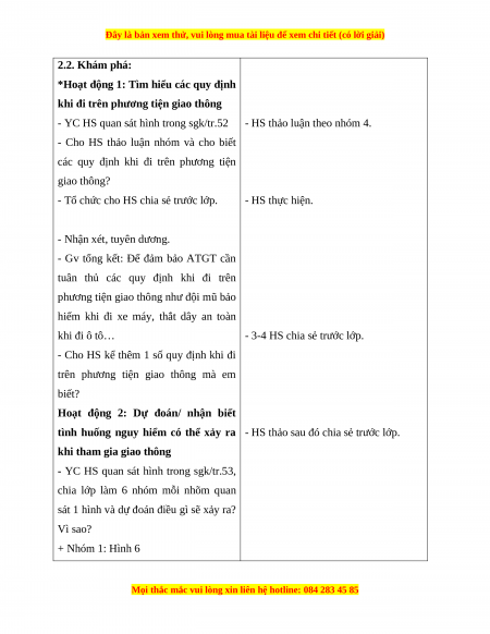 Giáo án Cùng tham gia giao thông Tự nhiên xã hội 2 Kết nối tri thức
