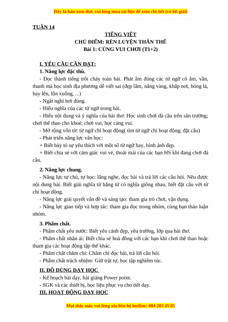 Bài 1: CÙNG VUI CHƠI (T1+2) I. YÊU CẦU CẦN ĐẠT: 1. Năng lực đặc thù.