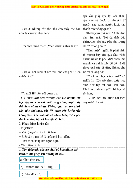 - Hiểu nội dung và ý nghĩa của bài thơ: Học sinh chơi đá cầu trên sân trường;