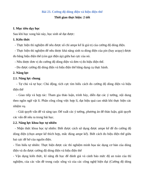 - Đo được cường độ dòng điện và hiệu điện thế bằng dụng cụ thực hành. 2. Năng lực 2.1. Năng lực chung