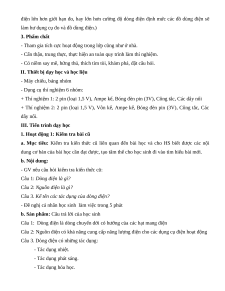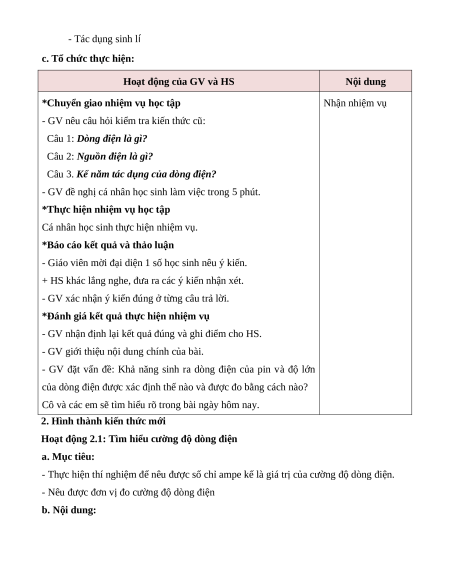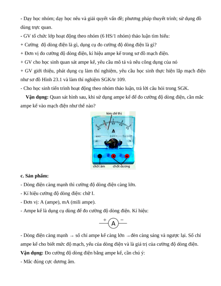 - Nêu được đơn vị đo cường độ dòng điện b. Nội dung: