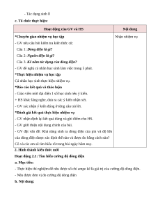 - Tìm hiểu tự nhiên: Thực hiện đưc các thí nghiệm minh ha tác dụng cơ bản của dòng