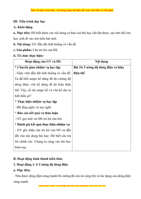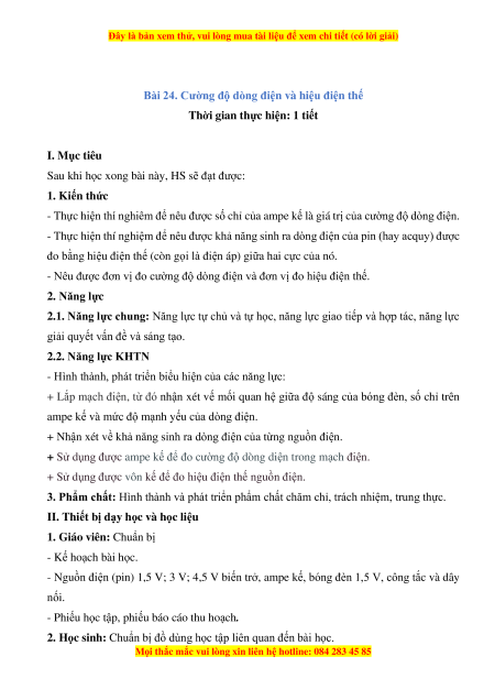 Bài 24. Cường độ dòng điện và hiệu