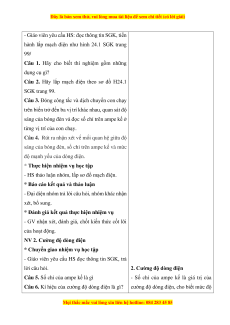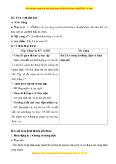 Giáo án Cường độ dòng điện và hiệu điện thế Vật lí 8 Kết nối tri thức