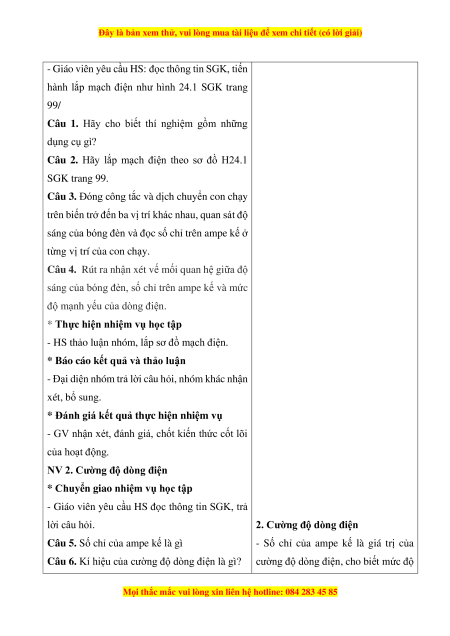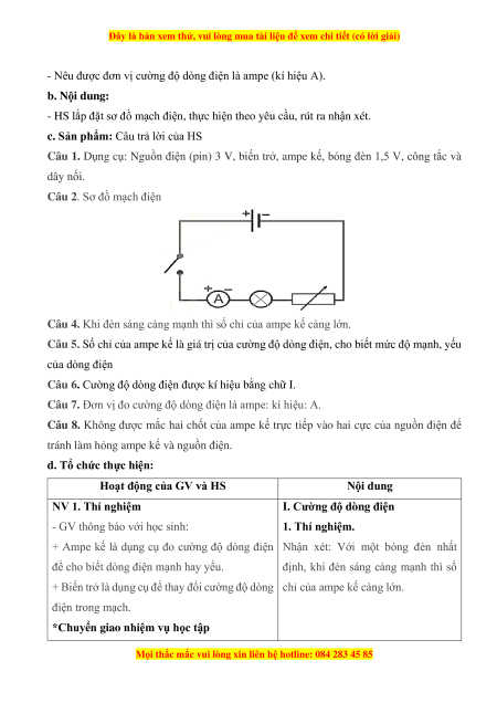 - Nêu được đơn vị cường độ dòng điện là ampe (kí hiệu A). b. Nội dung: