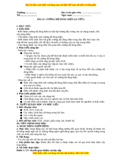 Ngày soạn …………………… BÀI 22: CƯỜNG Đ D Ộ ÒNG ĐI N Ệ (22 TI T) Ế I. MỤC TIÊU 1. Ki n ế th c ứ - Bi t ế được cư ng ờ đ ộ dòng đi n ệ là m t ộ đ i ạ lư ng ợ đ c ặ tr ng ư cho tác d ng m ụ nh, ạ y u ế c a ủ dòng đi n. ệ - Vi t ế đư c ợ công th c ứ tính cư ng ờ đ dòng đi ộ n. ệ - Bi t ế được bi u ể th c ứ liên hệ gi a ữ cư ng ờ độ dòng đi n ệ trong dây d n ẫ kim lo i ạ v i ớ mật đ h ộ ạt mang đi n, t ệ ốc đ d ộ ịch chuyển có hư ng ớ c a ủ các hạt mang đi n. ệ - Vận d ng ụ đư c ợ các công th c