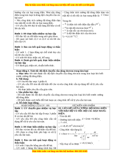 ố độ các hạt mang đi n. ệ b. N i ộ dung: - GV cho HS đ c ọ ph n ầ đ c ọ hi u ể trong m c ụ 1 và 2 trong ph n ầ II, GV đ a ư ra câu h i ỏ và yêu cầu HS trả l i ờ . - HS thực hi n yê ệ u cầu của giáo viên c. S n ả ph m h ẩ c ọ t p ậ : - HS bi t ế đư c ợ bản chất c a ủ dòng đi n t ệ rong kim lo i ạ là gì. - HS hi u ể được m i ố liên hệ gi a ữ cư ng ờ đ ộ dòng đi n ệ v i ớ m t ậ độ và t c ố đ ộ các h t ạ mang đi n. ệ d. T c ổ h c ứ ho t đ ạ n ộ g: HOẠT Đ N Ộ G C A Ủ GV - HS D K Ự IẾN SẢN PH M Ẩ Bư c ớ 1: GV chuy n ể giao nhi m v ệ h ụ c ọ t p ậ III. LIÊN HỆ GI A Ữ CƯ N Ờ G ĐỘ DÒNG - GV yêu c u ầ HS đ c ọ phần đ c ọ hi u ể trong m c ụ ĐI N Ệ V I Ớ M T Ậ Đ Ộ VÀ T C Ố Đ Ộ CÁC H T Ạ 1 và 2 trong phần II. MANG ĐI N Ệ . - GV đ a ư ra câu h i ỏ : - Dòng đi n ệ trong kim lo i ạ là dòng d c ị h chuy n ể + Ta đã bi t ế dòng đi n ệ là lòng d c ị h chuy n ể có có hư ng c ớ a ủ các electron tự do. M i ọ thắc m c