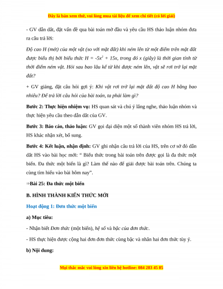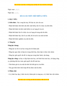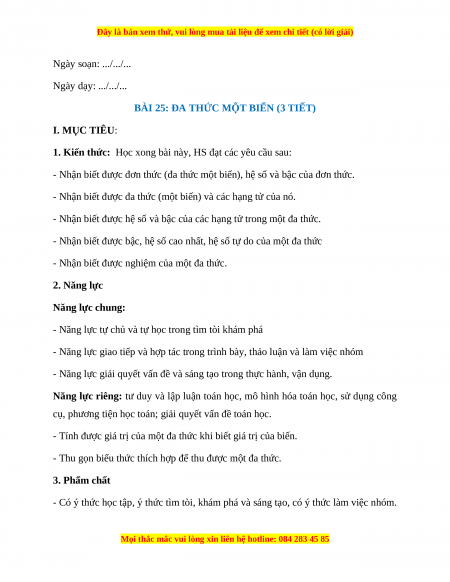 BÀI 25: ĐA THỨC MỘT BIẾN (3 TIẾT) I. MỤC TIÊU: