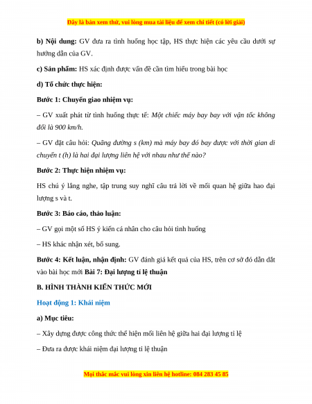 Giáo án Đại lượng tỉ lệ thuận Toán 7 Cánh diều