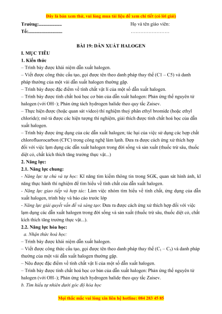 Tổ:............................ …………………… BÀI 19: DẪN XUẤT HALOGEN I. MỤC TIÊU 1. Kiến thức