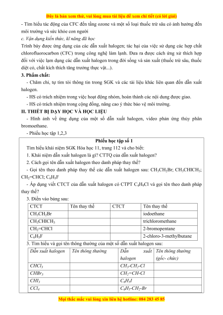 - HS đưa ra được cách ứng xử thích hợp đối với việc lạm dụng các dẫn xuất halogen trong