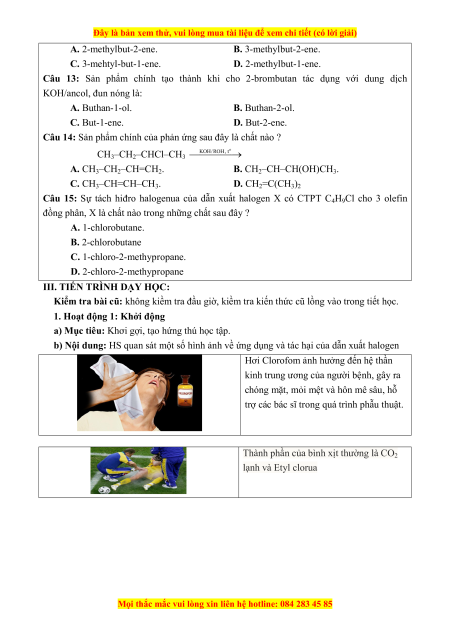 HS trình bày được ứng dụng của các dẫn xuất halogen; tác hại của việc sử dụng các hợp