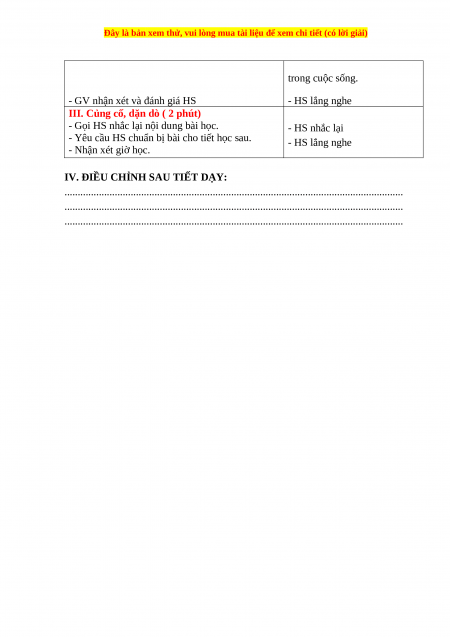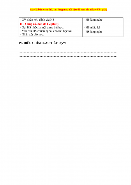 IV. ĐIỀU CHỈNH SAU TIẾT DẠY: