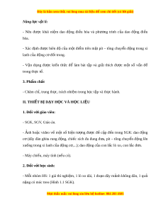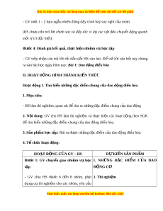 ệ tham gia đóng góp ý tư ng, ở đ t ặ câu h i ỏ và trả l i ờ các yêu cầu. - Giao ti p ế và h p ợ tác: Th o ả lu n ậ nhóm th c ự hi n ệ thí nghi m ệ để mô tả đư c ợ m t ộ số ví d đ ụ n gi ơ n ả v dao đ ề ng t ộ do ự - Năng l c ự gi i ả quy t ế v n ấ đ : ề Xác đ nh ị đư c ợ và bi t ế tìm hi u ể các thông tin liên quan đ n dao đ ế ng ộ đi u ề hòa, đ xu ề t ấ gi i ả pháp gi i ả quy t ế . M i