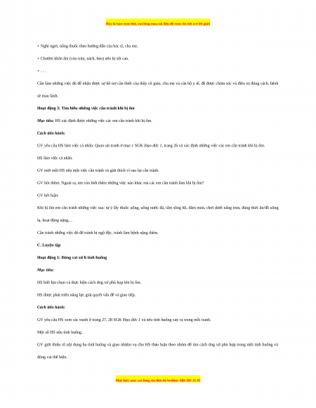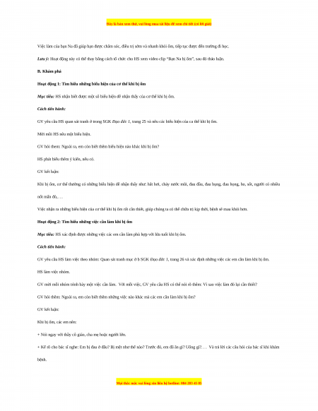 Lưu ý: Hoạt động này có thể thay bằng cách tổ chức cho HS xem video clip “Bạn Na bị ốm”, sau đó thảo luận. B. Khám phá
