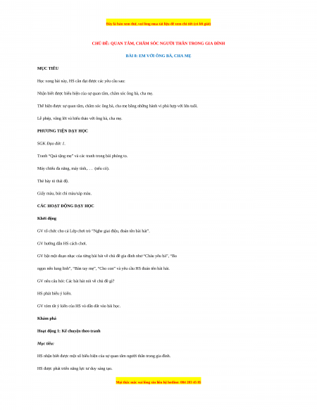 BÀI 8: EM VỚI ÔNG BÀ, CHA MẸ