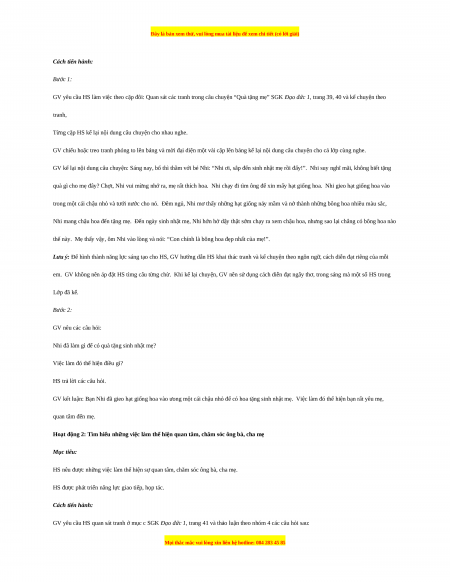 GV kết luận: Bạn Nhi đã gieo hạt giống hoa vào ưong một cái chậu nhỏ để có hoa tặng sinh nhật mẹ. Việc làm đó thể hiện bạn rất yêu mẹ,