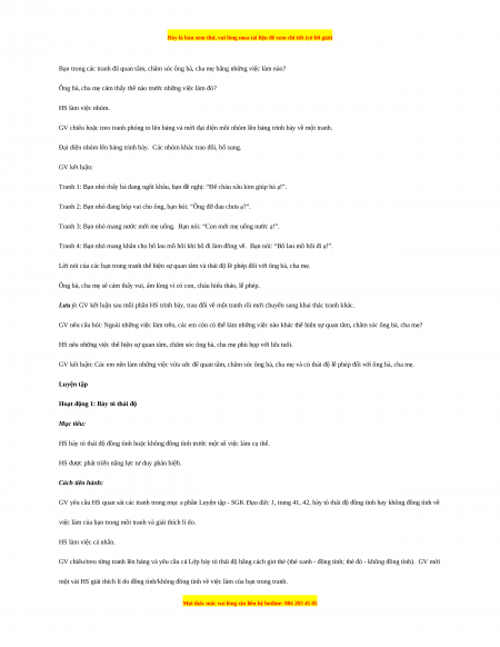 Hoạt động 2: Tìm hiểu những việc làm thể hiện quan tâm, chăm sóc ông bà, cha mẹ Mục tiêu: