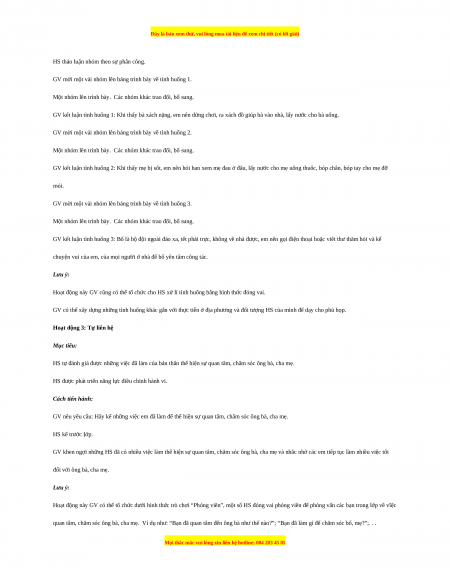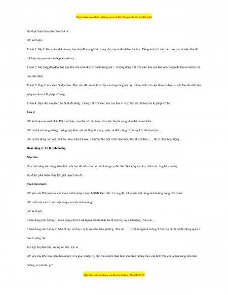 Hoạt động này GV cũng có thể tổ chức cho HS xử lí tình huống bằng hình thức đóng vai.