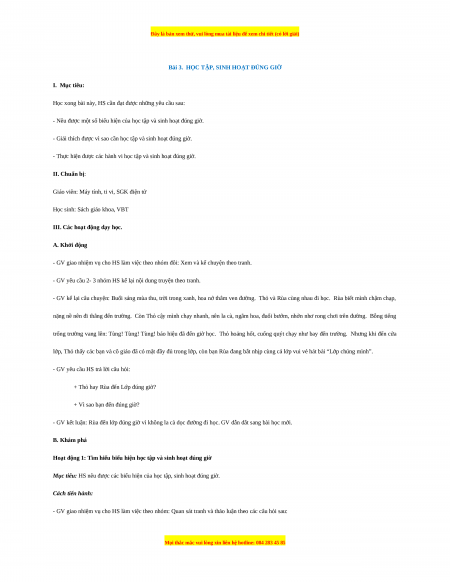 Bài 3. HỌC TẬP, SINH HOẠT ĐÚNG GIỜ I. Mục tiêu: