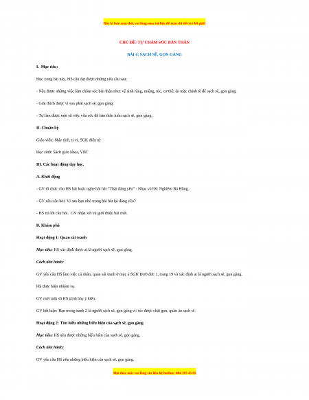 - Tự làm được một số việc vừa sức để bản thân luôn sạch sẽ, gọn gàng. II. Chuẩn bị: