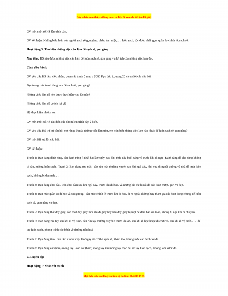 Hoạt động 3: Tìm hiểu những việc cần làm để sạch sẽ, gọn gàng