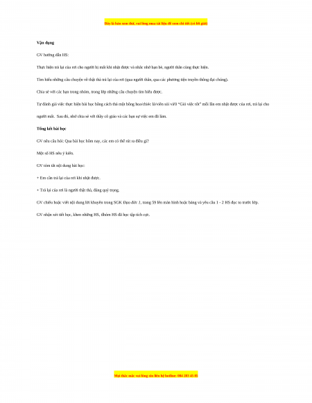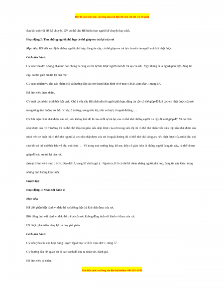 Giáo án Đạo đức 1 Cánh diều Trả lời của rơi