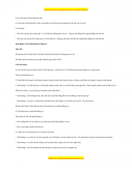 Hoạt động 2: Xử lí tình huống và đóng vai