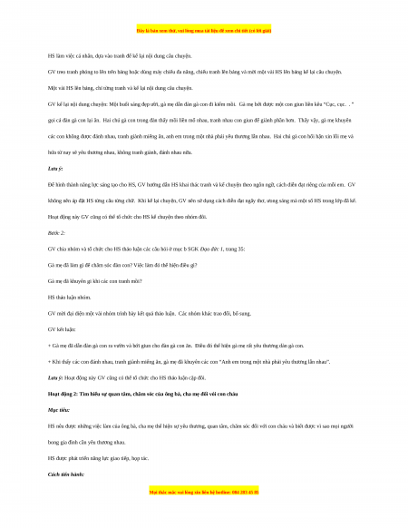 Hoạt động 2: Tìm hiểu sự quan tâm, chăm sóc của ông bà, cha mẹ đối vói con cháu Mục tiêu: