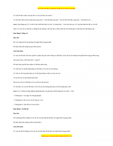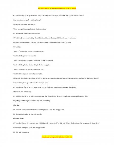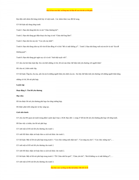Hoạt động 3: Thảo luận về cách thể hiện tình yêu thưoìig Mục tiêu: