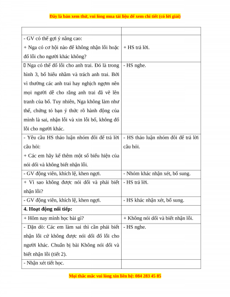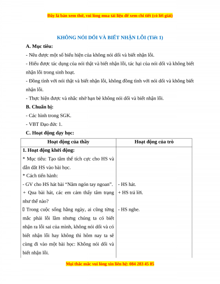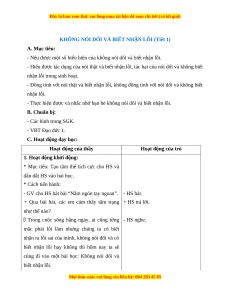 KHÔNG NÓI DỐI VÀ BIẾT NHẬN LỖI (Tiết 1) A. Mục tiêu: