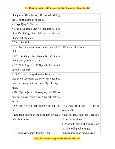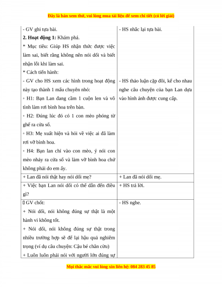 Giáo án Đạo đức 1 Chân trời sáng tạo Không nói dối và biết nhận lỗi