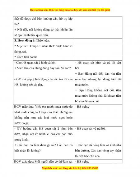 - GV chỉ góp ý linh động cho câu trả lời của mua bút nhưng lại dùng tiền để HS, không nên áp đặt. mua nước.