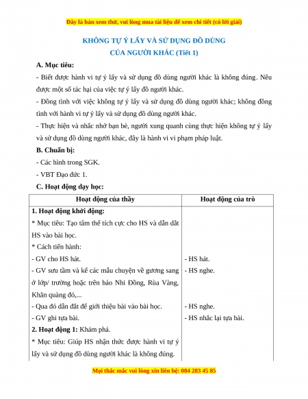 và sử dụng đồ dùng người khác, đây là hành vi vi phạm pháp luật. B. Chuẩn bị: - Các hình trong SGK. - VBT Đạo đức 1.