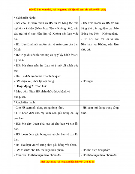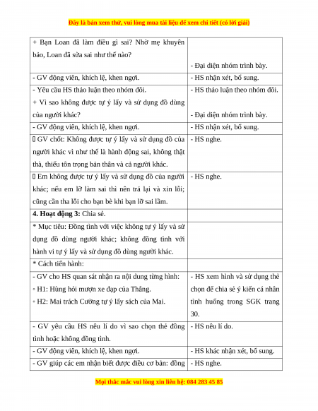 ◦ H2: Mẹ dạy Loan phải trả lại cho bạn và xin lỗi bạn.