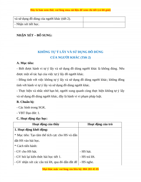 Giáo án Đạo đức 1 Chân trời sáng tạo Không tự ý lấy và sử dụng đồ của người khác