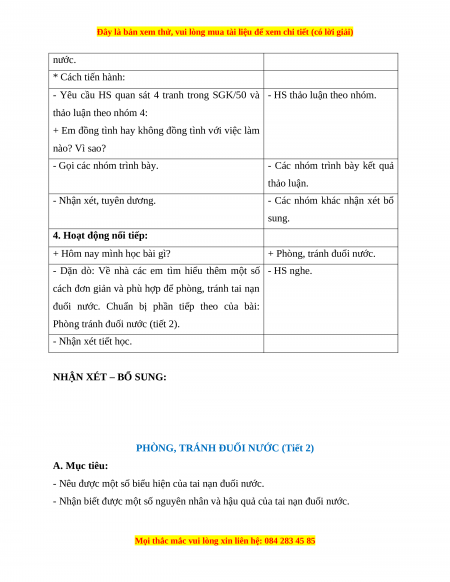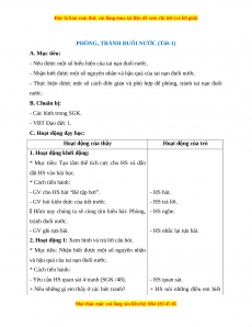 PHÒNG, TRÁNH ĐUỐI NƯỚC (Tiết 1) A. Mục tiêu: