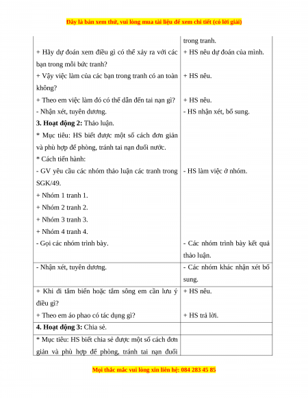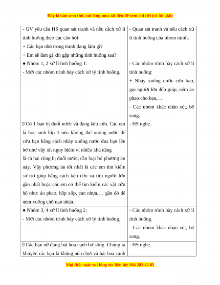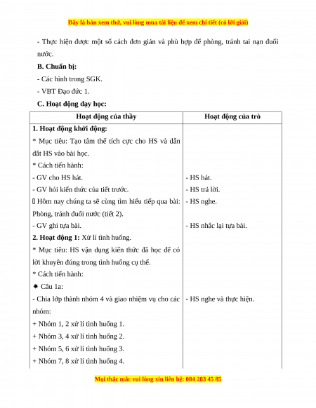 Giáo án Đạo đức 1 Chân trời sáng tạo Phòng, tránh đuối nước