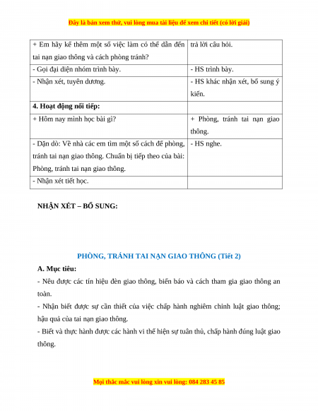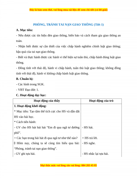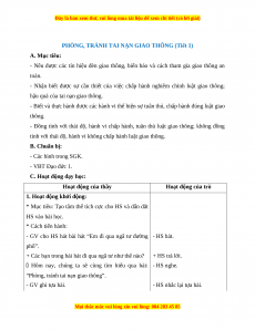 PHÒNG, TRÁNH TAI NẠN GIAO THÔNG (Tiết 1) A. Mục tiêu: