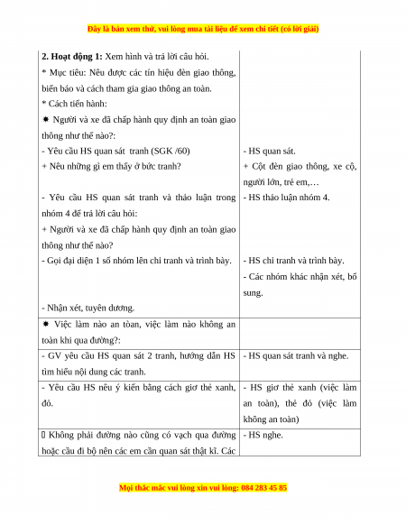 Giáo án Đạo đức 1 Chân trời sáng tạo Phòng, tránh tai nạn giao thông