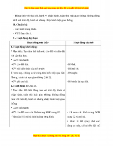 - Biết và thực hành được các hành vi thể hiện sự tuân thủ, chấp hành đúng luật giao thông.