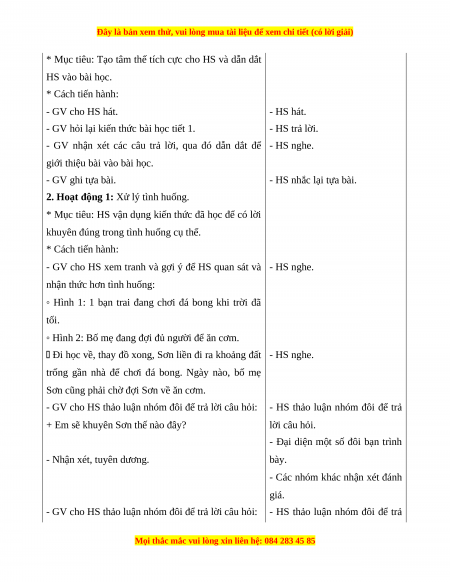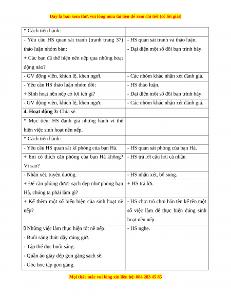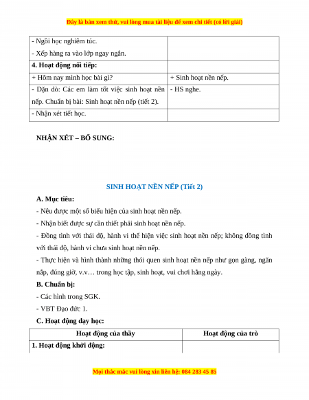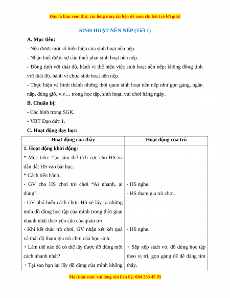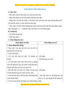 Giáo án Đạo đức 1 Chân trời sáng tạo Sinh hoạt nền nếp