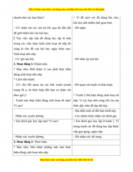 - Nêu được một số biểu hiện của sinh hoạt nền nếp.