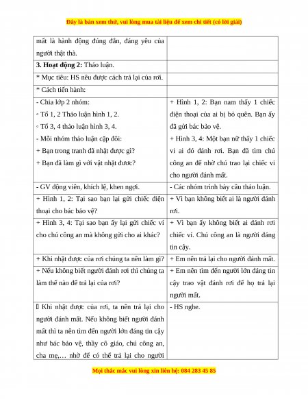 Giáo án Đạo đức 1 Chân trời sáng tạo Trả lại của rơi