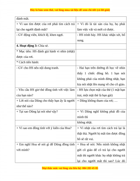 - Dặn dò: Các em nhặt được của rơi thì trả lại