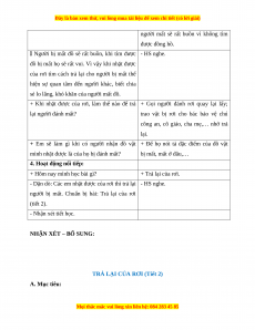 - Nêu được hành động nhặt được của rơi, biết tìm cách trả lại cho người đánh mất