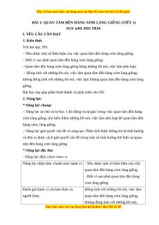 – Nêu được một số biểu hiện của việc quan tâm đến hàng xóm láng giềng;