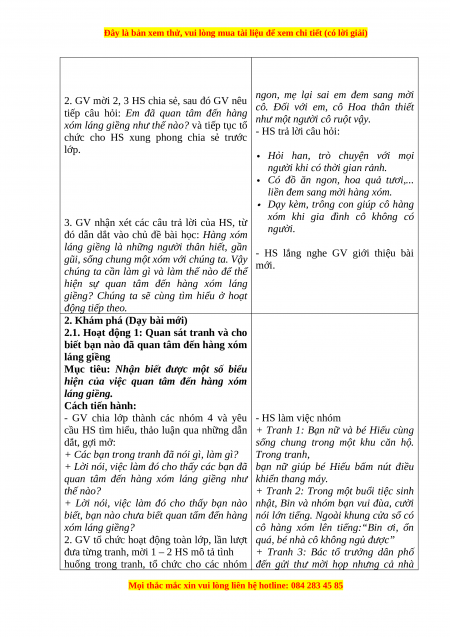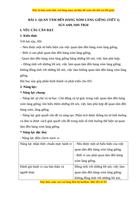 BÀI 1: QUAN TÂM ĐẾN HÀNG XÓM LÁNG GIỀNG (TIẾT 1) SGV tr69, SHS TR34