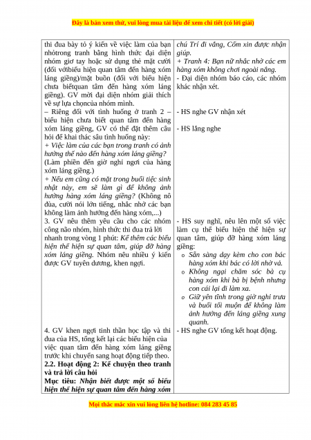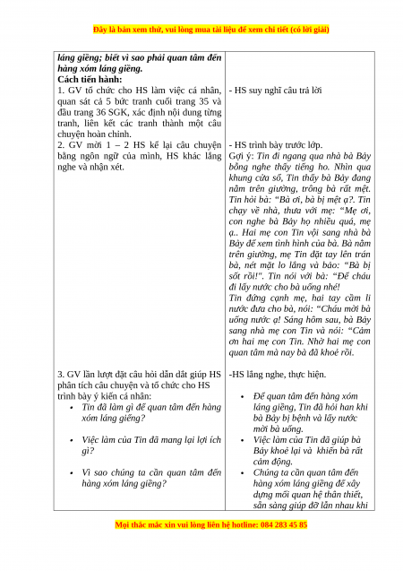 giúp đỡ hàng xóm láng giềng trong đời sống hằng ngày phù hợp với lứa tuổi. 3. Phẩm chất: