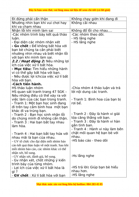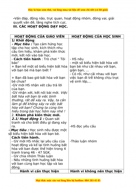 - Nêu được lợi íchcủa việc xử lí bất hòa với bạn. -Cách tiến hành. HS thảo luận nhóm